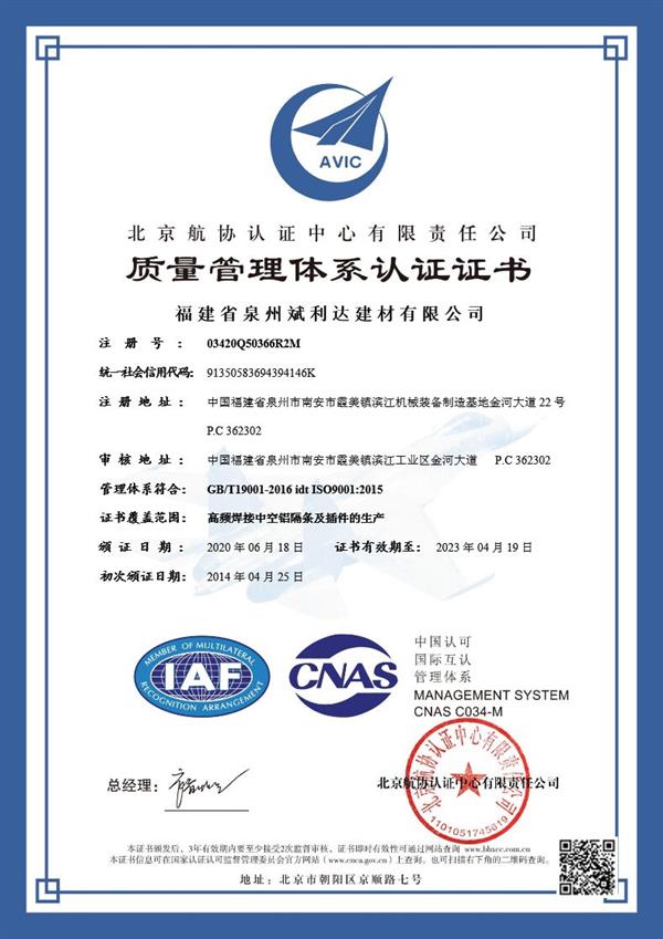 斌利达公司本着"质量稳定,精益求精"的追求,在所生产的铝隔条、暖边条和铝装饰条等产品获得国标认可、行业认可的同时,不断进取,争取开发生产出更好的产品。最好的产品、最好的服务、最好的信誉,福建省泉州斌利达建材有限公司感谢国内外客户的长期支持,也期待成为您最可信赖的长期合作伙伴。斌利达全体员工竭诚欢迎新老客户来我司洽谈、指导。愿与您携手合作,共创辉煌!